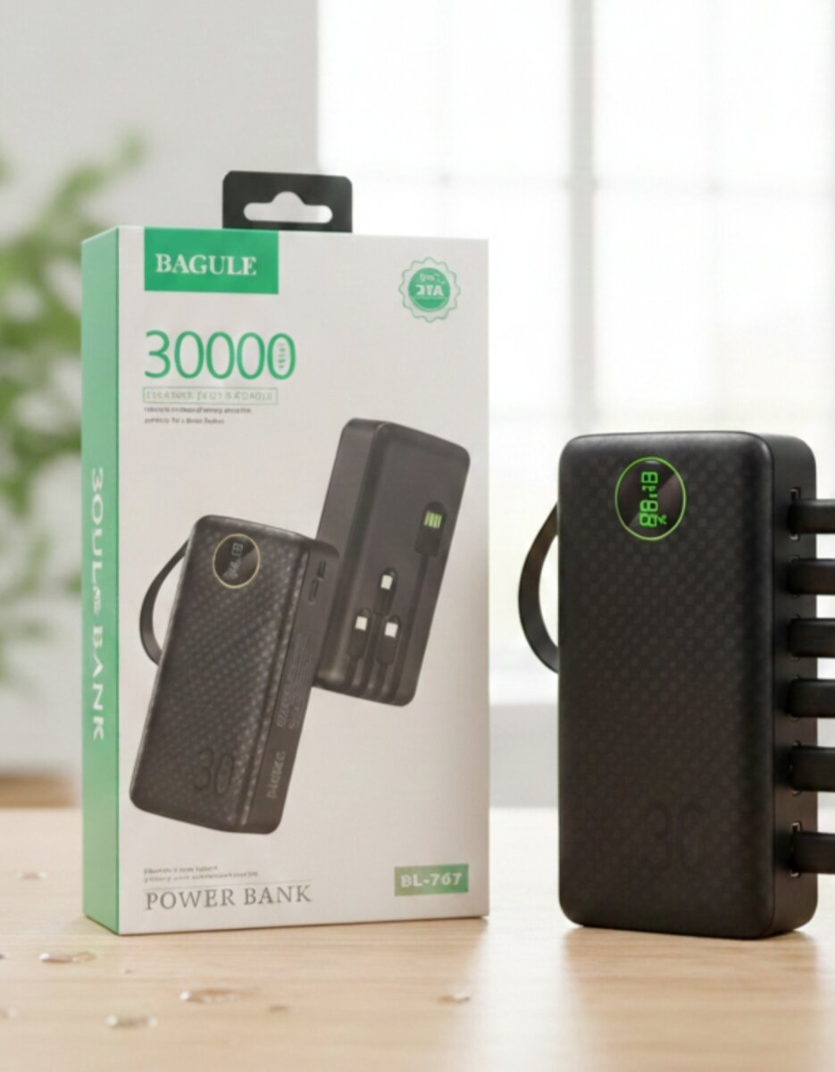 Chargeur portable BAGULE 30000mAh, parfait pour les longues journées. Compact et puissant, il vous permet de recharger vos appareils en déplacement. Idéal pour les voyageurs et les professionnels.