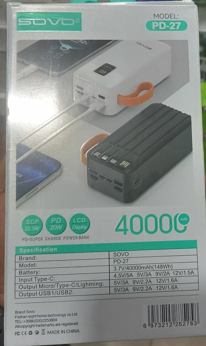 Power Bank 40000mAh Sovo