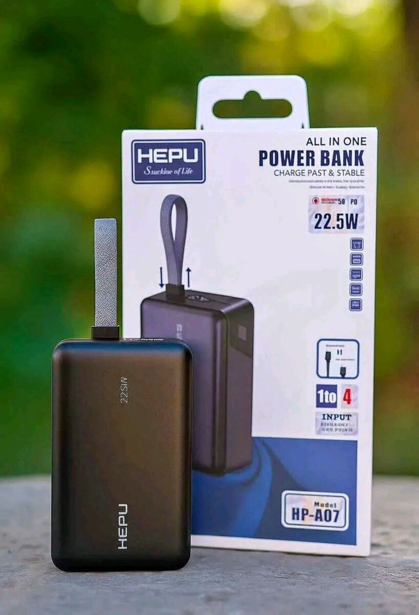 Chargez vos appareils en déplacement avec le Power Bank HEPU 22.5W. Compact et puissant, il offre une charge rapide et stable. Idéal pour les voyages et les activités en extérieur.
