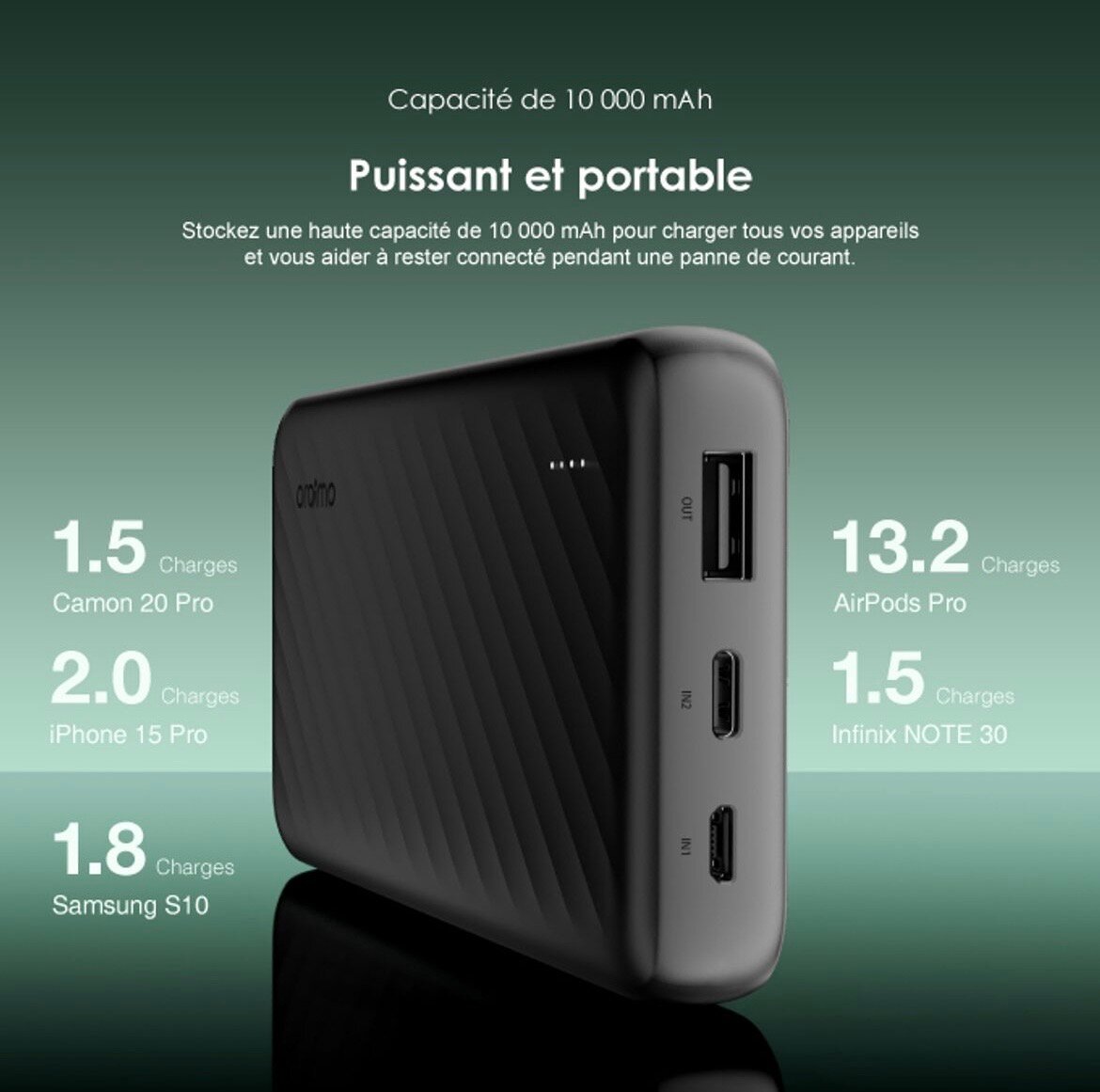 Batterie de 10000mAh avec 3 câbles intégrés pour une charge rapide. Compatible Lightning, Type-C et Micro-USB, idéale pour iPhone, Samsung et plus. Chargez en toute vitesse et commodité.