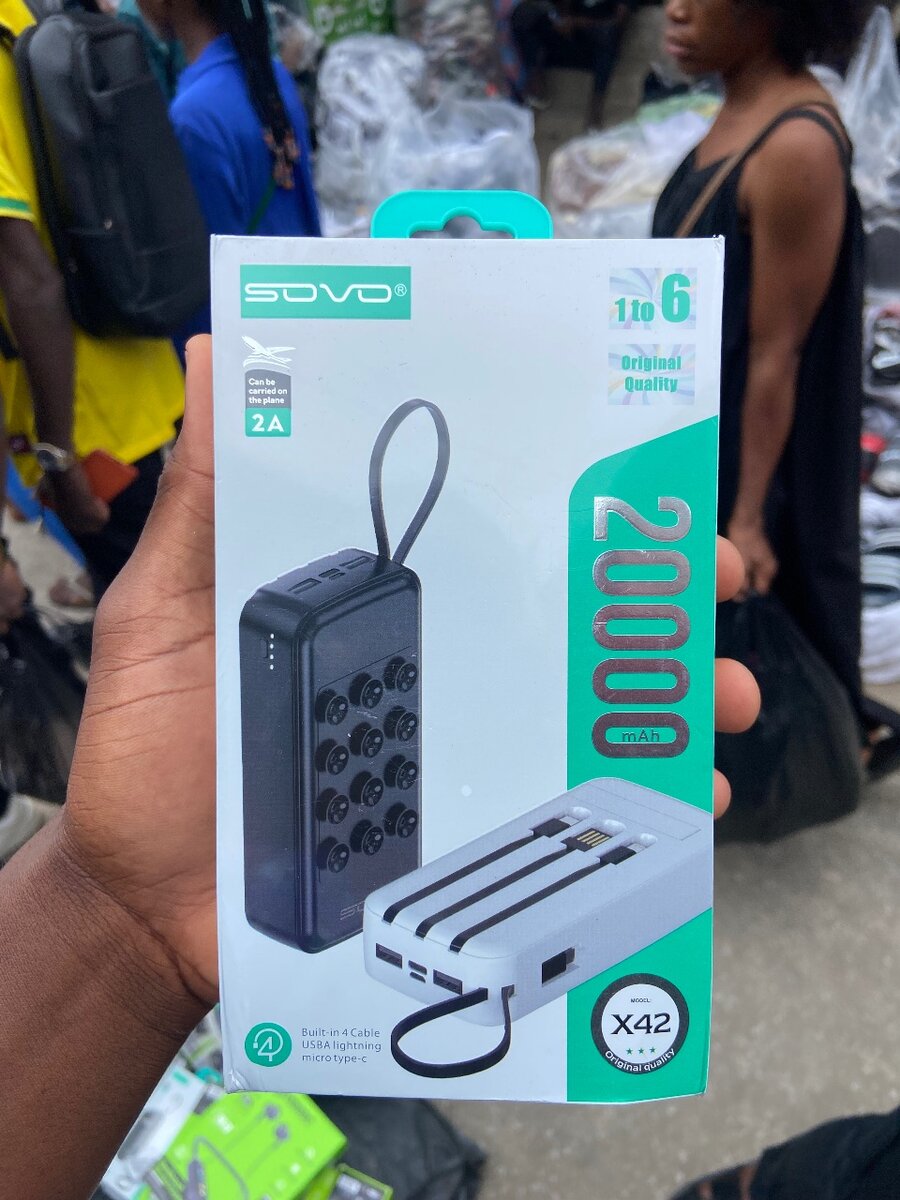 Découvrez le Power Bank SOVO avec une capacité massive de 20000mAh. Idéal pour recharger vos appareils lors de vos déplacements. Doté de multiple ports et d'un design moderne, il est l'accessoire parfait pour vos besoins quotidiens en énergie. Parfait pour les voyageurs et les professionnels en déplacement.