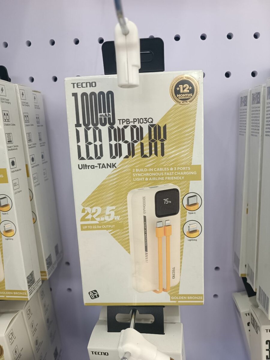 Découvrez le Powerbank Ultra-TANK TECNO, une batterie externe de 10000mAh avec écran LED. Charge ultra-rapide grâce à ses câbles intégrés et 3 ports. Idéal pour vos voyages !
