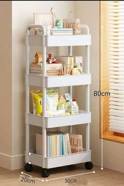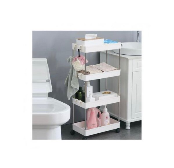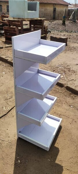 Présentoir blanc multi-niveaux, idéal pour boutiques ou maisons, parfait pour organiser ou exposer des objets.