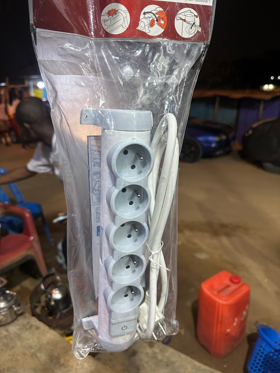 Prise multiple 5 prises avec fil, idéal pour brancher plusieurs appareils électriques en même temps. Sécurité et praticité pour la maison ou le bureau.