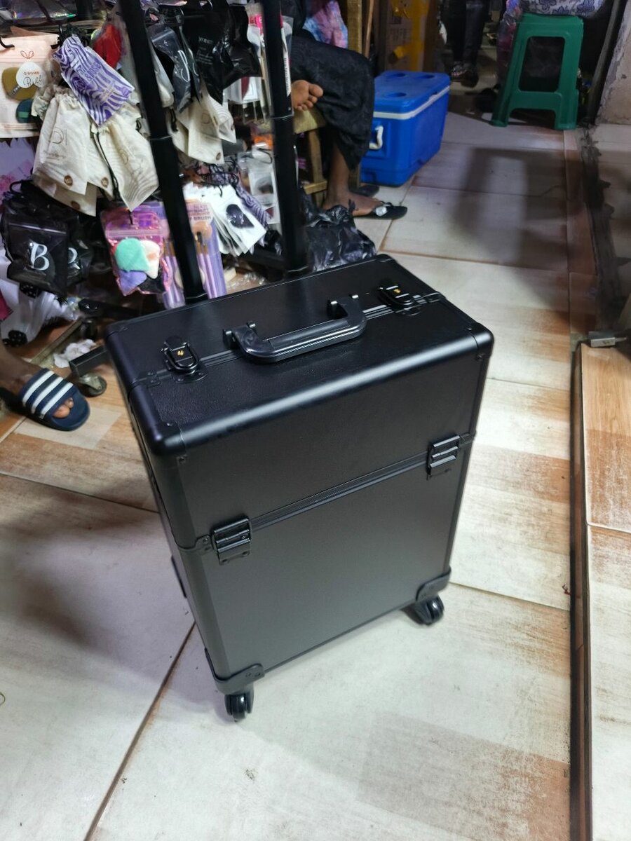 Ideal for makeup artists, this trolley case features a sleek design with multiple compartments for organizing cosmetics and tools. Durable and easy to maneuver with 360-degree wheels, it's perfect for travel and professional use.