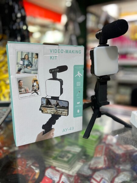 Elevate your content creation with this complete vlogging setup featuring a versatile tripod, bright ring light, and high-quality microphone. Perfect for aspiring vloggers and seasoned creators alike, bringing studio-quality recording to any location.