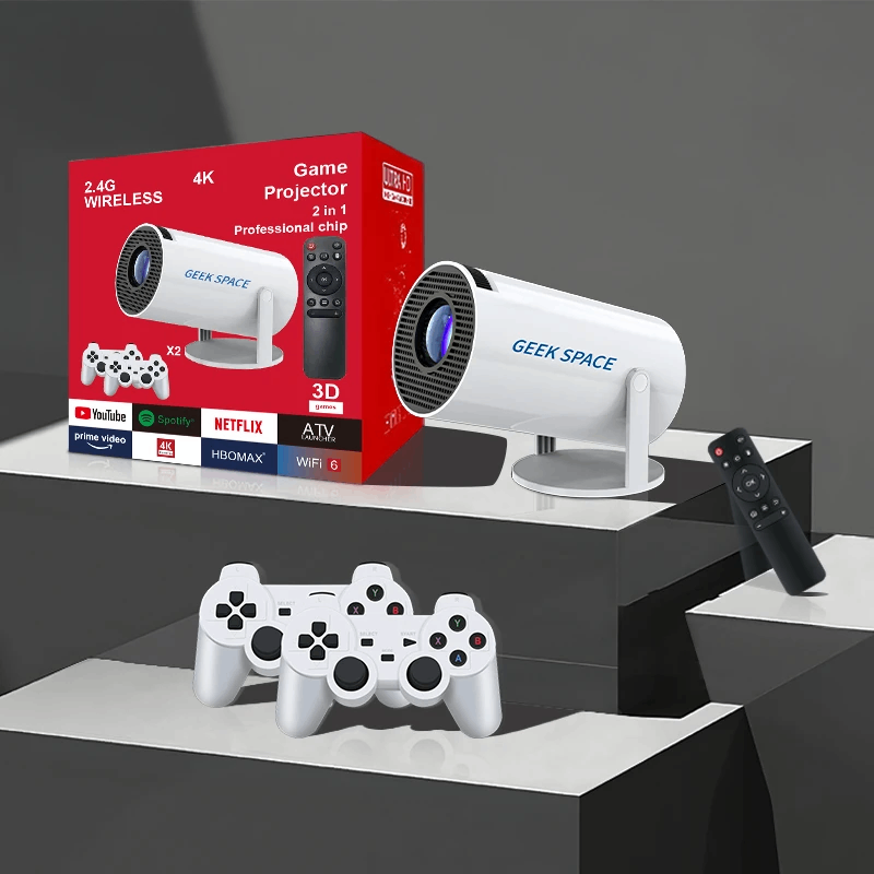 Transformez votre maison en salle de jeu avec le projecteur 4K Geek Space. Connectez vos appareils via WiFi pour une expérience immersive, idéale pour films et jeux. Parfait pour les passionnés de technologie.