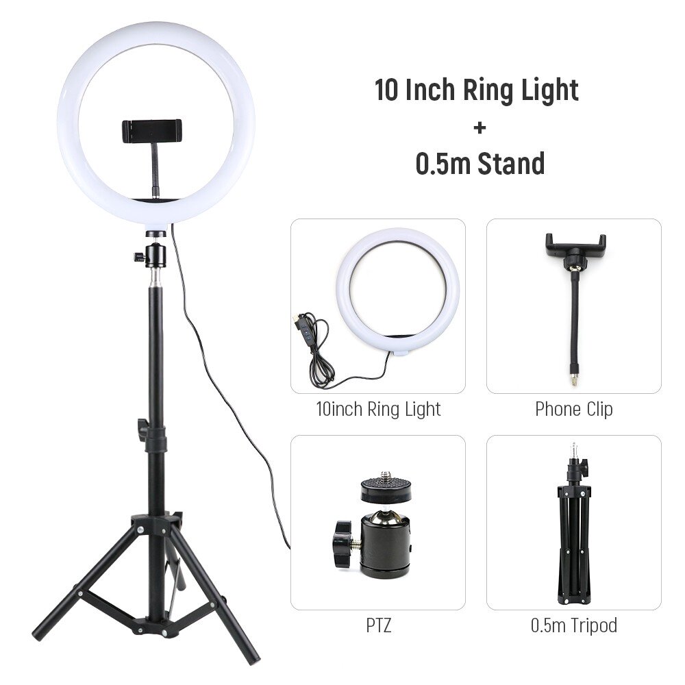Optimisez votre éclairage avec cet anneau lumineux 10 pouces sur trépied ajustable de 0,5 m. Idéal pour les vidéos, le maquillage et les selfies, il offre une lumière uniforme pour des résultats professionnels. Facile à utiliser avec un clip pour téléphone intégré. Un must pour les créateurs de contenu et amateurs de photographie.
