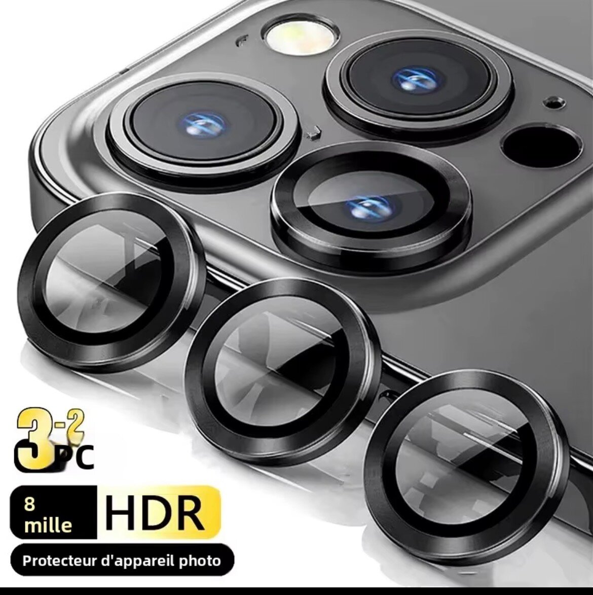 Protégez efficacement la caméra de votre iPhone avec ce protecteur d'objectif ultra-résistant. Parfait pour éviter les rayures et maintenir une qualité HDR optimale. Installation facile, idéal pour les amateurs de photo.