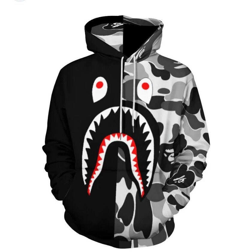 Sweat à capuche camouflage requin rouge