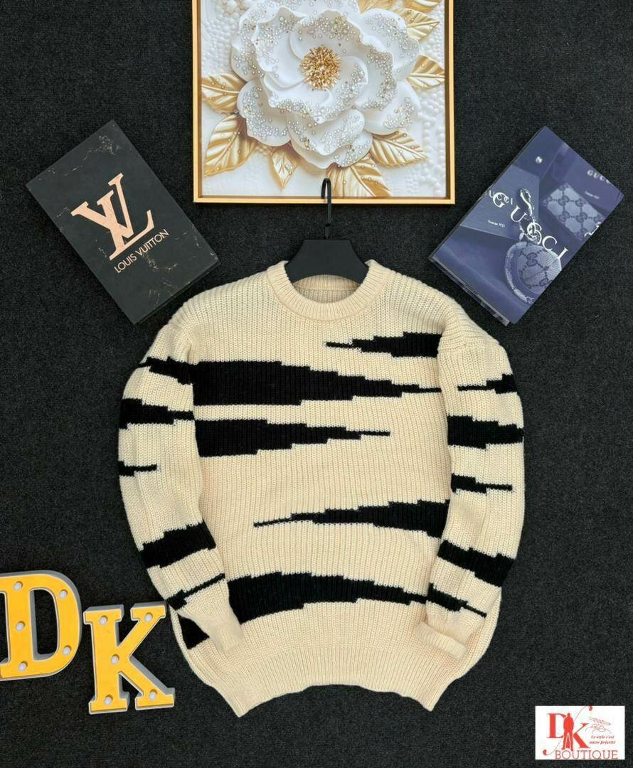 Découvrez ce pull en laine moderne beige avec des motifs noirs uniques. Parfait pour un look chic et décontracté, il assure confort et chaleur. Idéal pour les saisons froides, ce pull versatile se marie aussi bien avec un jean qu’un pantalon de costume. Un choix élégant pour toutes les occasions!