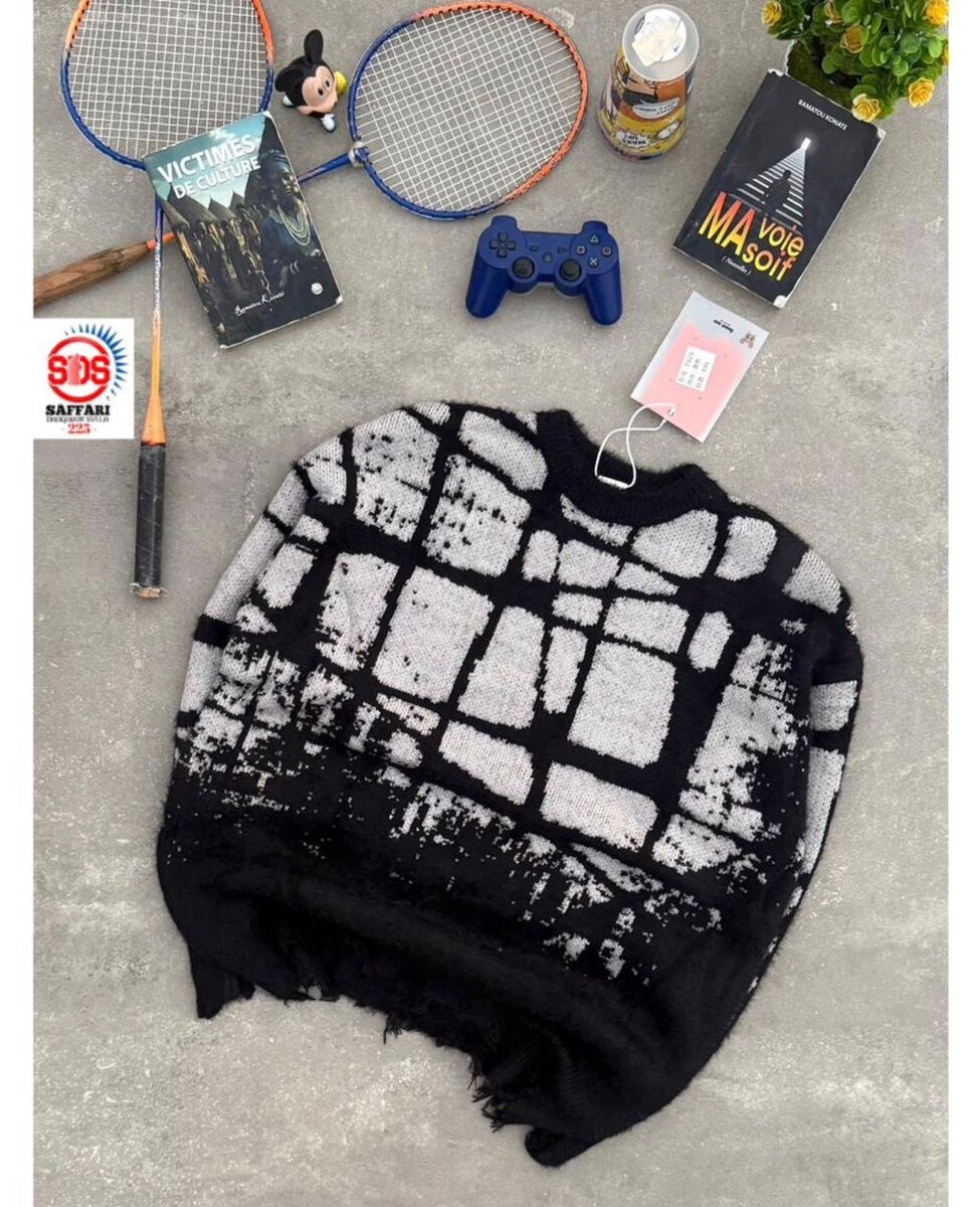 Pull homme noir et blanc à motif carreaux, style décontracté et tendance. Conçu pour un usage quotidien, il est parfait pour toutes les occasions. Disponible en différentes tailles.