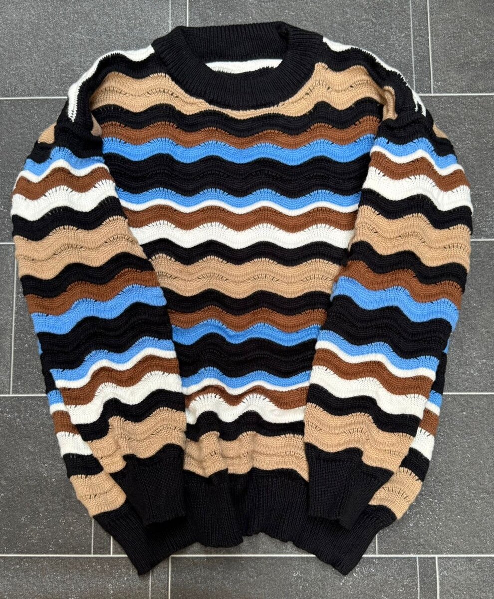 Élégant pull en laine rayé aux couleurs vives, parfait pour ajouter une touche de style à votre tenue. Confortable et chaud, il est idéal pour les journées fraîches. Convient aussi bien pour un look décontracté que pour une soirée chic.