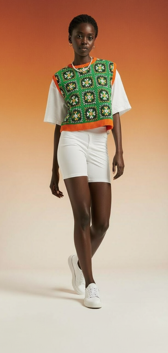 Découvrez ce pull sans manches au style crochet vibrant. Parfait pour les tenues décontractées et élégantes, il offre une touche rétro et moderne. Idéal pour toutes saisons grâce à son design ouvert et respirant. Associez-le avec un jean ou une jupe pour un look tendance.