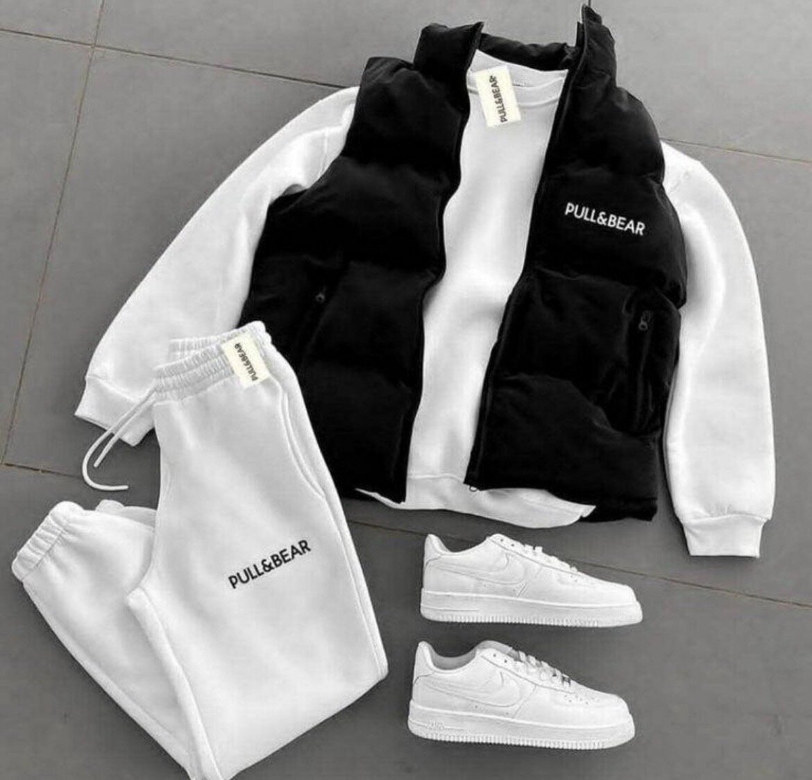 Ensemble de survêtement Pull&Bear pour homme comprenant sweatshirt, gilet et pantalon. Conçu pour le confort et le style.