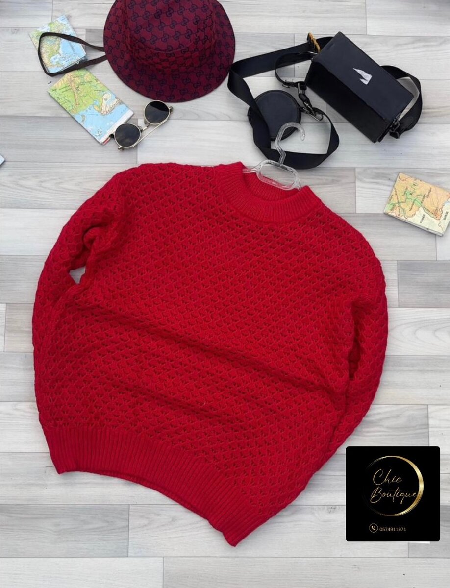 Pull en tricot rouge homme