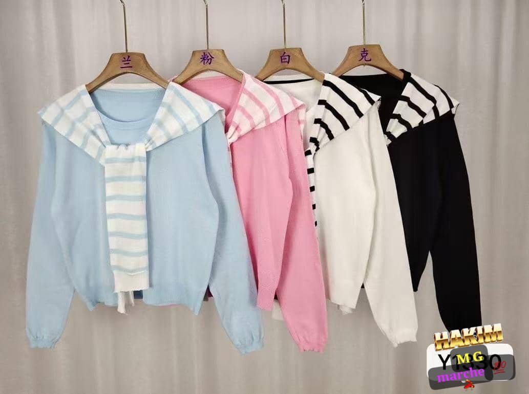 Ajoutez une touche de style marin à votre garde-robe avec ces pulls légers. Disponibles en plusieurs couleurs, ils disposent d'un col design avec des rayures attrayantes. Parfaits pour les journées fraîches, ils sont confortables et polyvalents. Idéal pour une tenue décontractée ou un look sophistiqué en bord de mer. Fabriqués avec des matériaux doux pour un confort optimal.