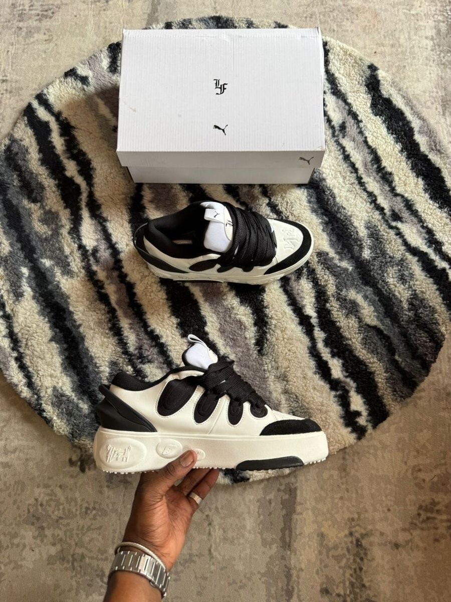 Découvrez les baskets Puma Fenty noires et blanches, conçues pour les passionnés de mode. Confortables et élégantes, ces chaussures sont parfaites pour un usage quotidien ou pour des occasions spéciales. Livrées avec leur boîte originale.