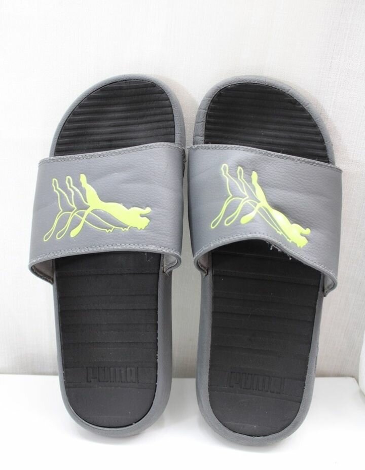 Experience ultimate comfort with these Puma slide sandals. Designed with a sleek gray and black finish, they feature a durable sole and are perfect for casual outings or relaxation by the pool. The iconic logo adds a stylish touch, making them an ideal choice for summer.