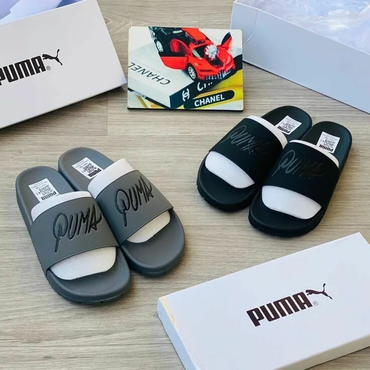 Découvrez les slides PUMA pour hommes, parfaits pour l'été. Conçus pour le confort, disponibles en noir et gris. Livrés avec boîte originale PUMA.