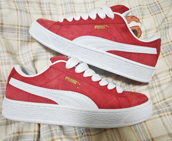 Découvrez les baskets Puma Suede, un classique indémodable. Conçues pour les hommes, ces chaussures en cuir suédé rouge sont parfaites pour un look streetwear. Légères et confortables, elles sont idéales pour le quotidien.