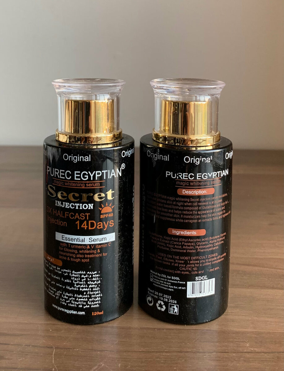Purec Egyptian magic whitening secret injection serum revitalizes, repair and whitens skin at night when cell renewal is at its peak.