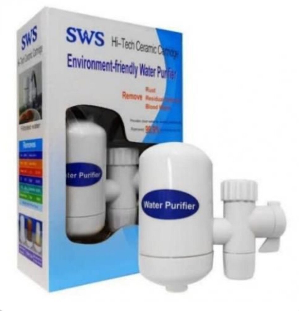 Purificateur d'eau écologique SWS pour robinet, idéal pour éliminer les impuretés et améliorer la qualité de l'eau. Installation facile sur tous types de robinets. Parfait pour la maison ou le bureau.