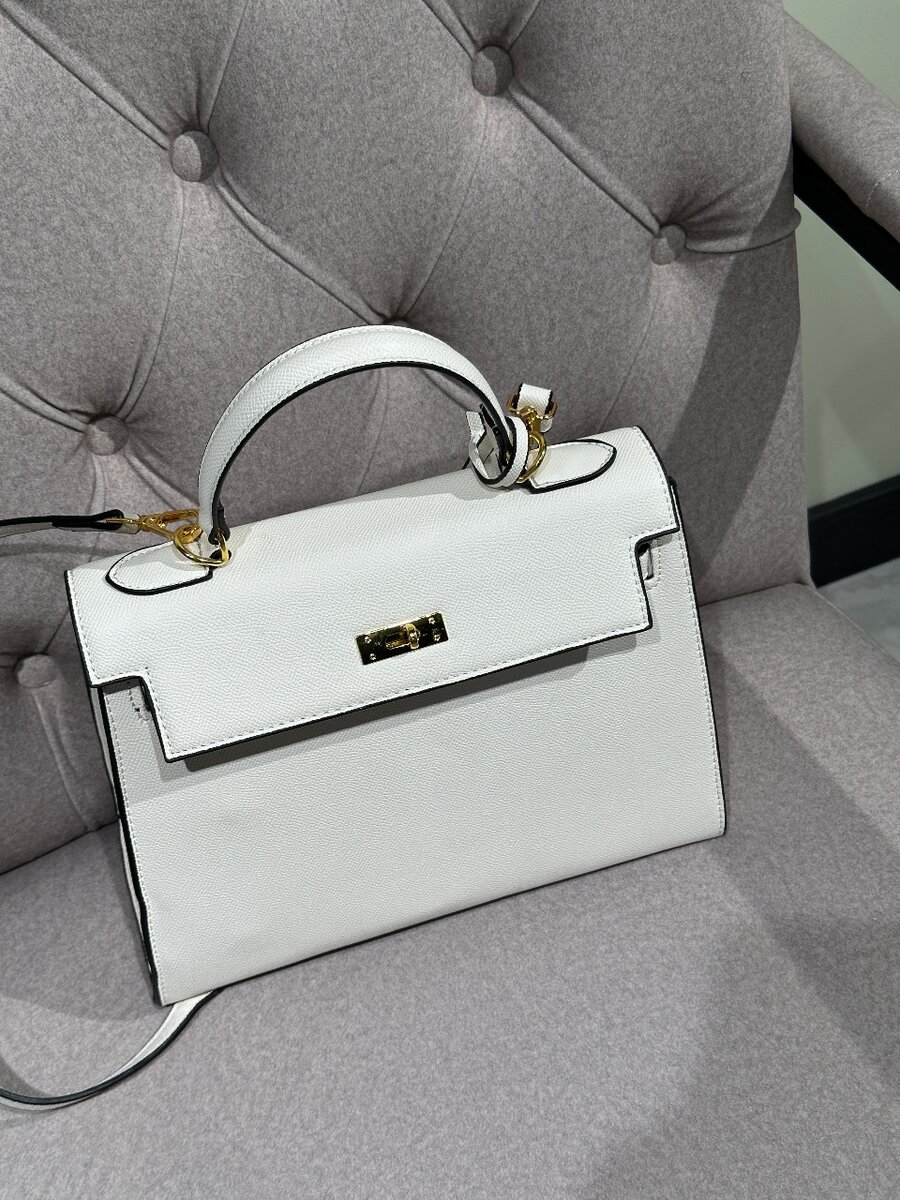 Эта сумка стильная и элегантная модель в классическом дизайне. Она выполнена в белом цвете с аккуратной черной окантовкой по краям, что придает ей выразительность.