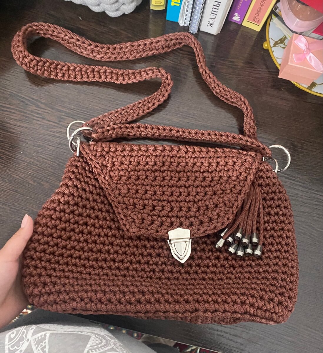 Очень стильная плотная плетенная сумочка Длинный ремешок сьемный Форму держит отлично Новая