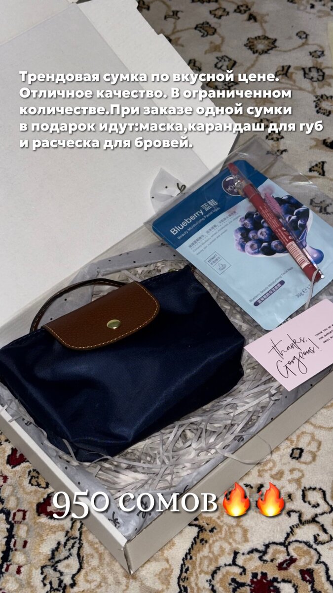 Те самые сумки,которые взорвали соц.сети в этом году. Самые ходовые расцветки. Мальенкогл размера,но вместительная. Всего за 950 сомов