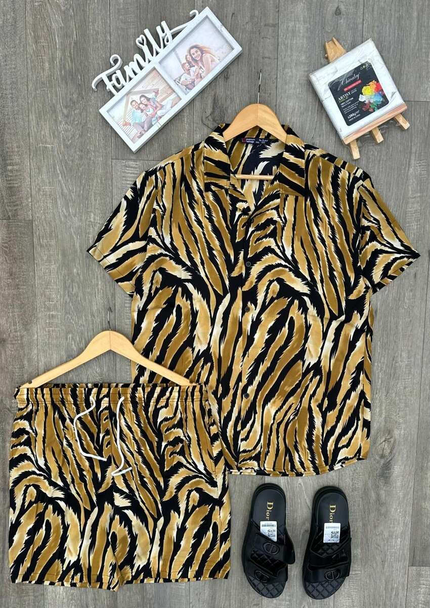 Soyez audacieux avec cet ensemble pyjama à motif tigre. Conçu pour le confort et le style, il est idéal pour des nuits paisibles ou des journées décontractées à la maison. Fabriqué en tissu doux, cet ensemble comprend une chemise à manches courtes et un short avec taille élastique. Parfait pour ceux qui recherchent confort et originalité dans leur garde-robe de nuit.