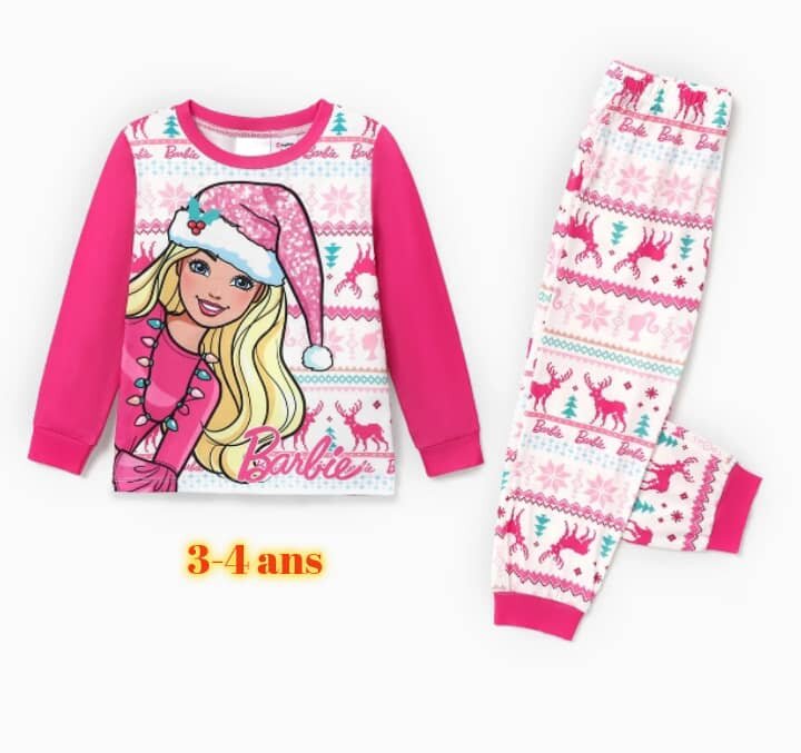 Découvrez notre pyjama Barbie spécial Noël pour enfants de 3-4 ans. Confortable et doux, idéal pour passer une nuit chaleureuse en hiver. Avec des motifs festifs et colorés, c'est le cadeau parfait pour les petites fans de Barbie.