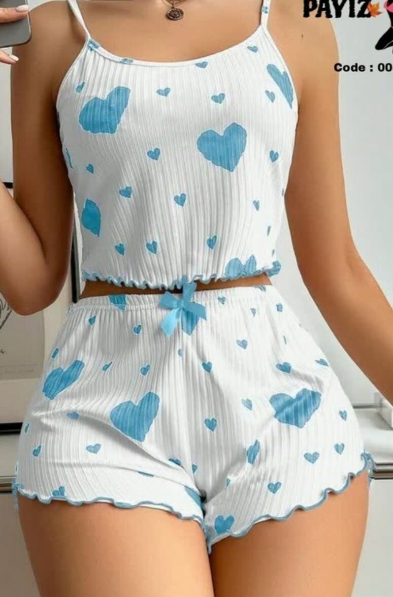 Optez pour le confort et le style avec ce pyjama deux pièces à motifs de cœurs. Fabriqué en tissu doux et stretch, cet ensemble est parfait pour des nuits douillettes. Le haut à fines bretelles offre une belle allure estivale tandis que le short à taille élastique assure un ajustement relaxant. Idéal pour un sommeil paisible ou une journée cocooning à la maison.