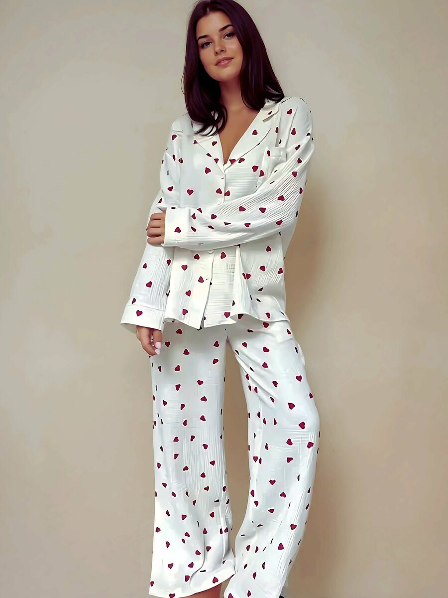 Détendez-vous avec style dans ce pyjama femme doux et élégant, parsemé de cœurs tendres. Idéal pour des nuits confortables, grâce à sa coupe ample et son tissu respirant. Offrez-vous un sommeil de rêve ou un moment de détente en journée.