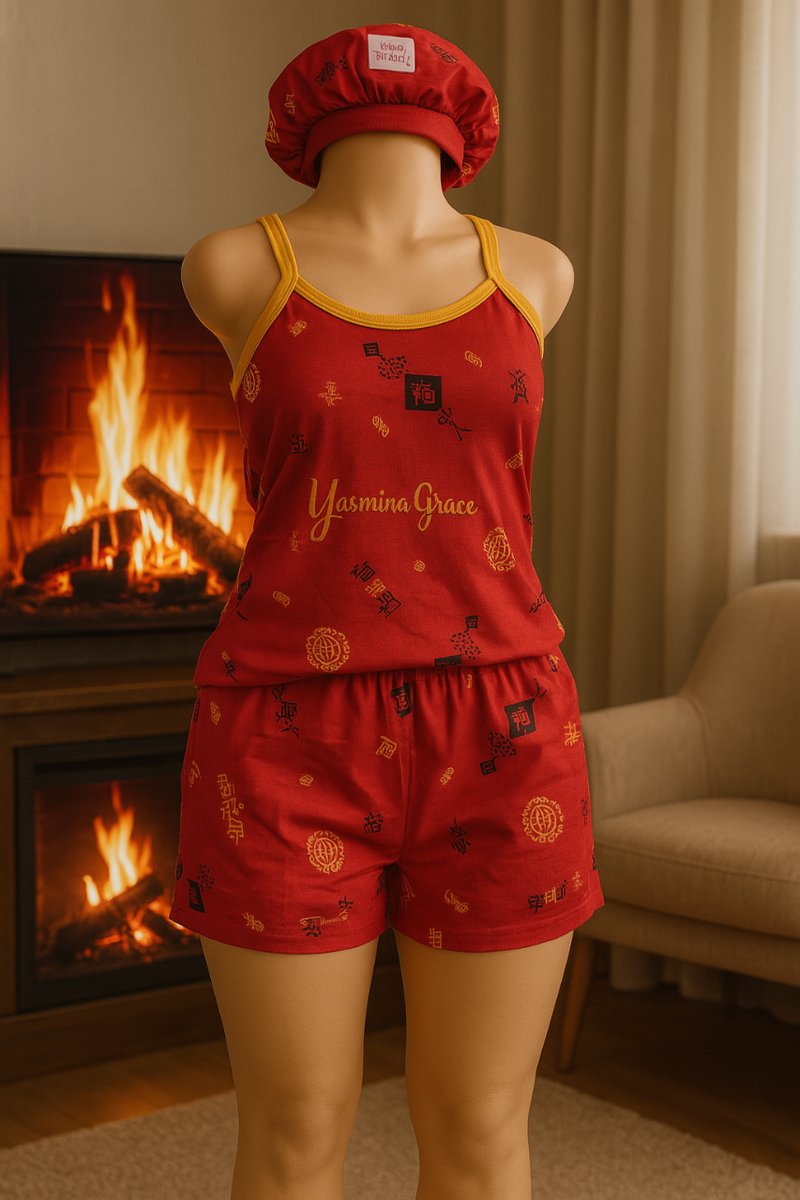 Découvrez ce pyjama femme en coton doux, idéal pour des nuits paisibles. Avec son débardeur léger et son short assorti, ce pyjama est parfait pour l'été. Les motifs uniques ajoutent une touche de style, tandis que le bonnet inclus offre un confort supplémentaire. Parfait pour se détendre à la maison ou offrir en cadeau.