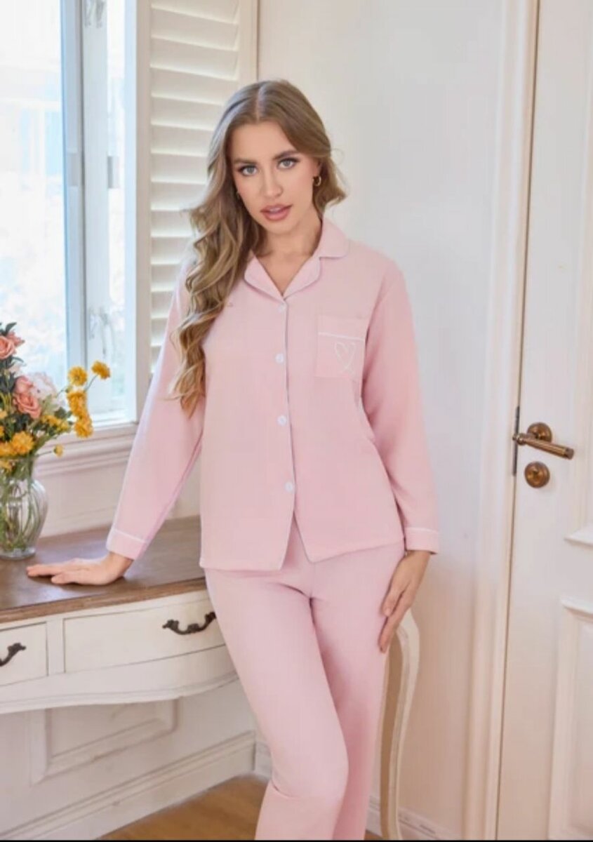 Pyjama femme en rose, confortable et élégant. Conçu pour des nuits paisibles et un repos optimal. Tissu doux et respirant, idéal pour le sommeil ou la détente à la maison.