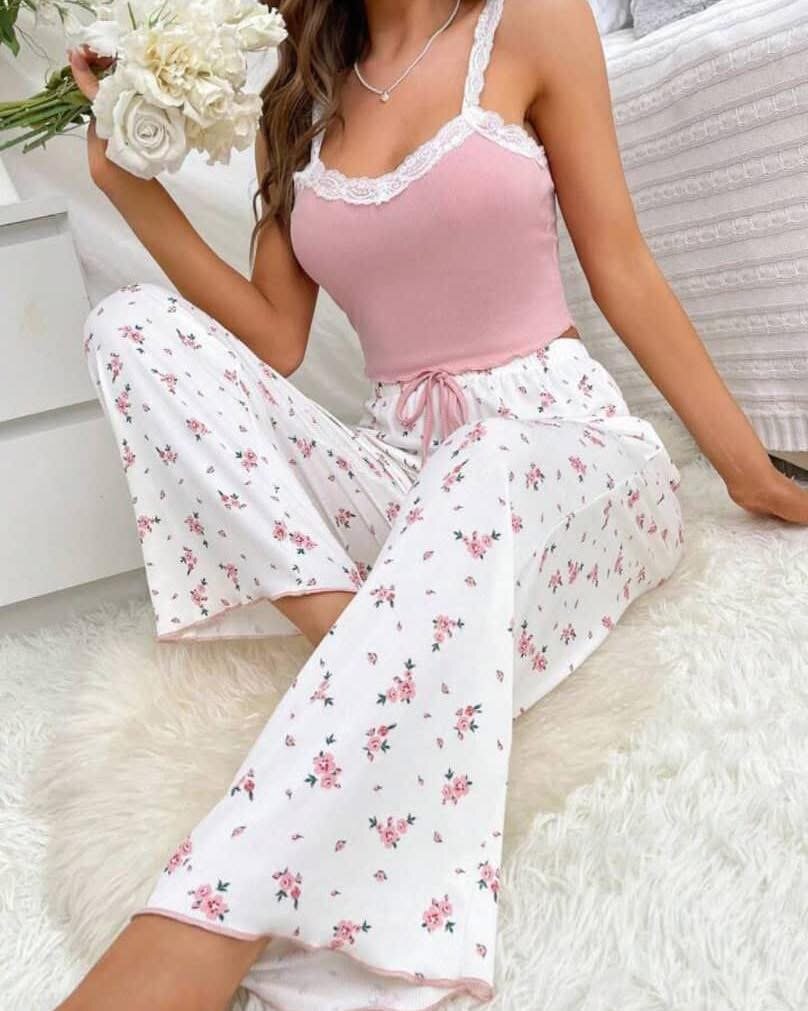 Confort ultime avec notre pyjama floral pour femme. En coton doux, parfait pour des nuits paisibles. Style élégant avec dentelle délicate pour un look romantique. Idéal pour se détendre à la maison ou offrir en cadeau.