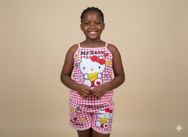 Pyjama confortable avec motif Hello Kitty pour les filles. Conçu pour un sommeil paisible, ce pyjama est fait de tissu doux et respirant. Parfait pour les soirées cocooning ou pour dormir chez les copines.