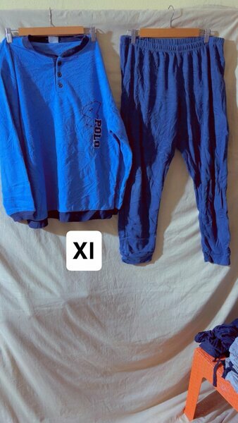Pyjama homme bleu foncé XL, matière moelleuse et chaude, idéal pour nuits fraîches à la maison.