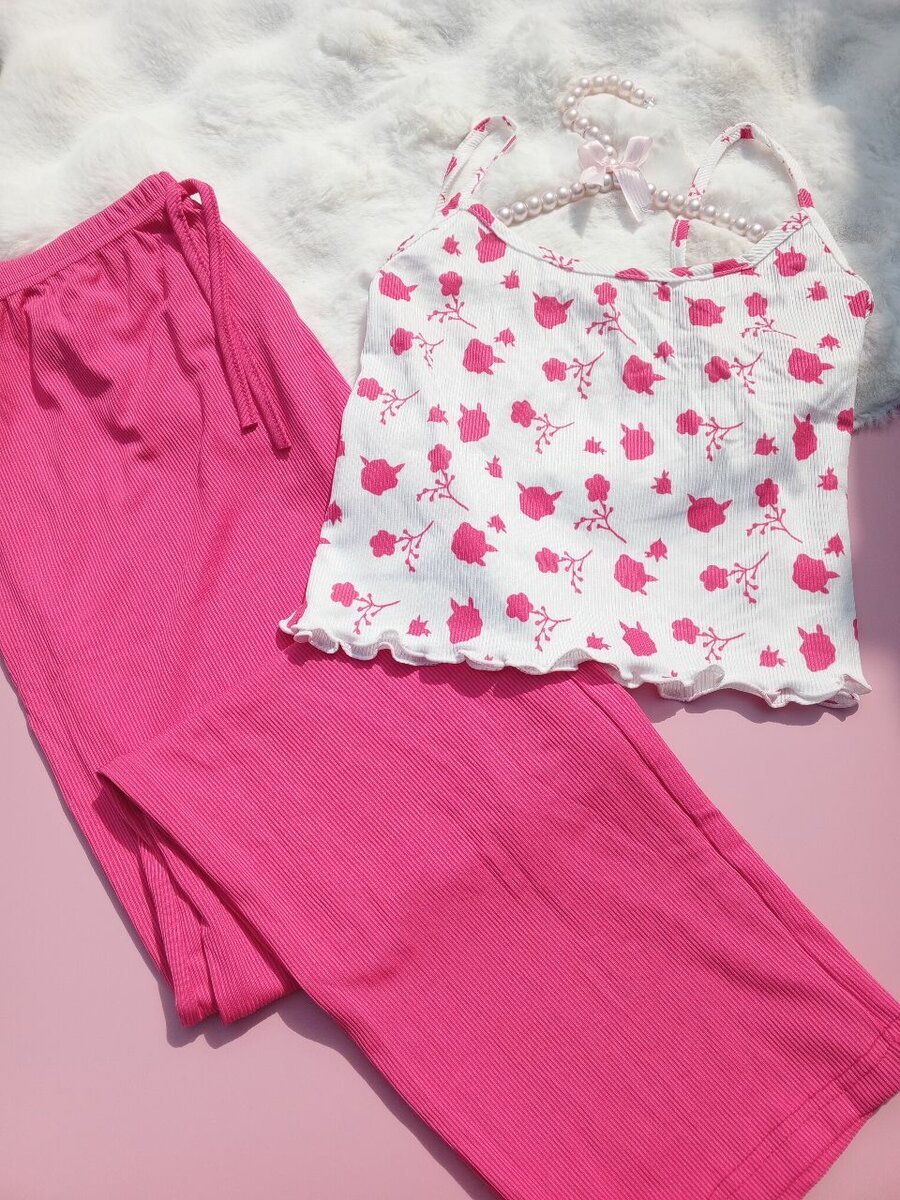 Pyjamas pantalons fleuris pour femme deux tons de qualité