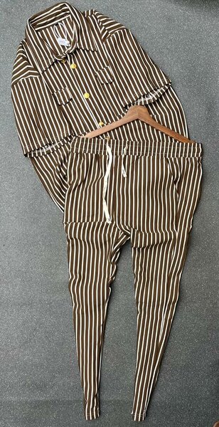Découvrez ce pyjama rayé élégant et confortable, parfait pour des nuits paisibles. Avec son tissu doux et sa coupe décontractée, il est idéal pour se détendre à la maison. Offre style et confort avec des poches pratiques. Ne manquez pas cet essentiel de votre garde-robe!