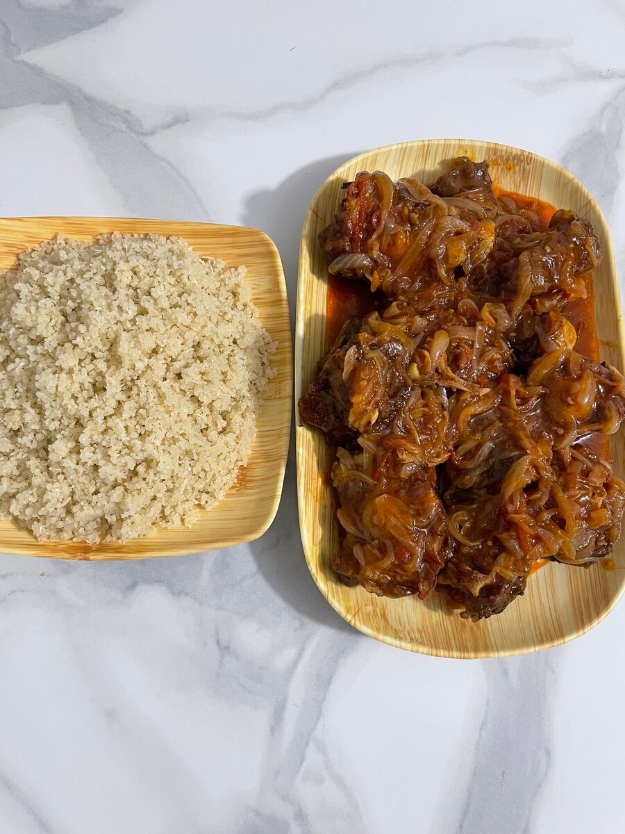 Dégustez notre délicieux plat de viande mijotée accompagné de quinoa moelleux. Parfait pour un repas équilibré et savoureux. Idéal pour les amateurs de cuisine maison.