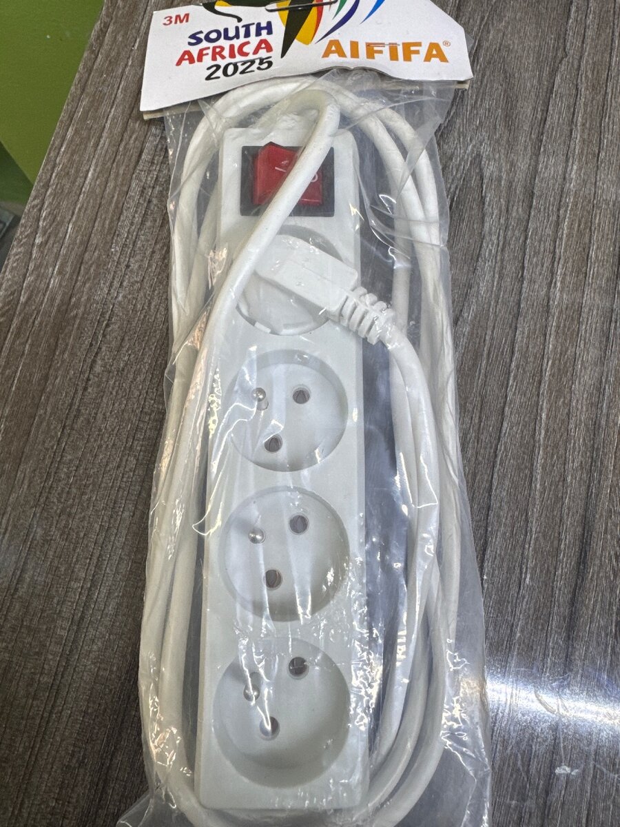 Rallonge électrique à trois prises avec interrupteur intégré, idéale pour gérer vos appareils électriques facilement. Avec câble de 3 mètres, elle s'adapte parfaitement à vos besoins à la maison ou au bureau.