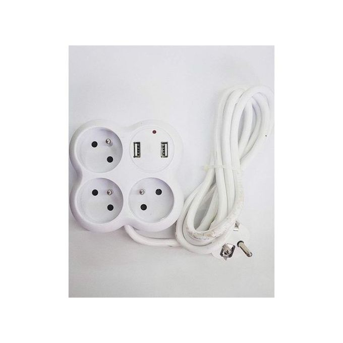 Rallonge Multiprise 3 Trous Et 2 PORT USB - Blanc