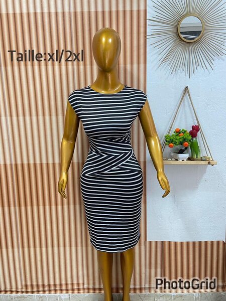 Belle robe tricot multicolore bien lourd avec fente sur le c