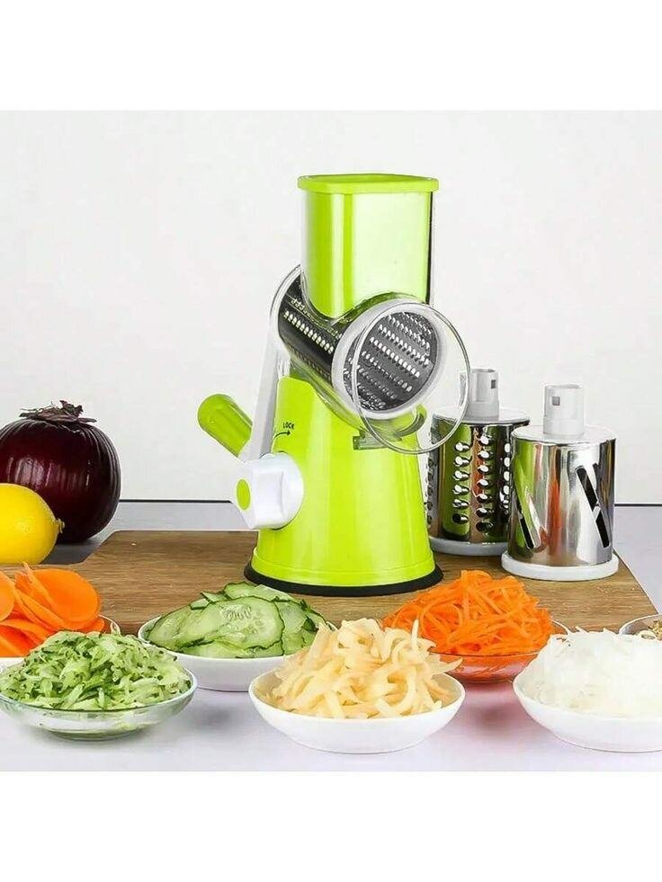 Râpez facilement vos fromages, légumes et plus avec cette râpe rotative 3 en 1. Design ergonomique pour une utilisation simple et efficace. Parfaite pour une cuisine moderne!