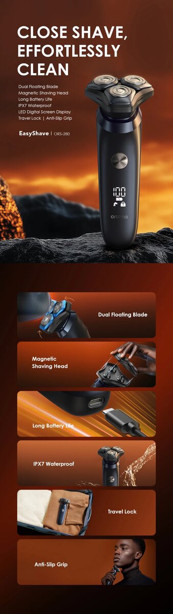 Découvrez le rasage parfait avec notre rasoir électrique, doté de lames flottantes doubles et d'une tête de rasage magnétique. Idéal pour le domicile et le voyage grâce à sa longue autonomie de 60 minutes et sa poignée antidérapante. Entièrement lavable pour un nettoyage facile et muni d'une serrure de voyage pour éviter les activations accidentelles. Choisissez la perfection.