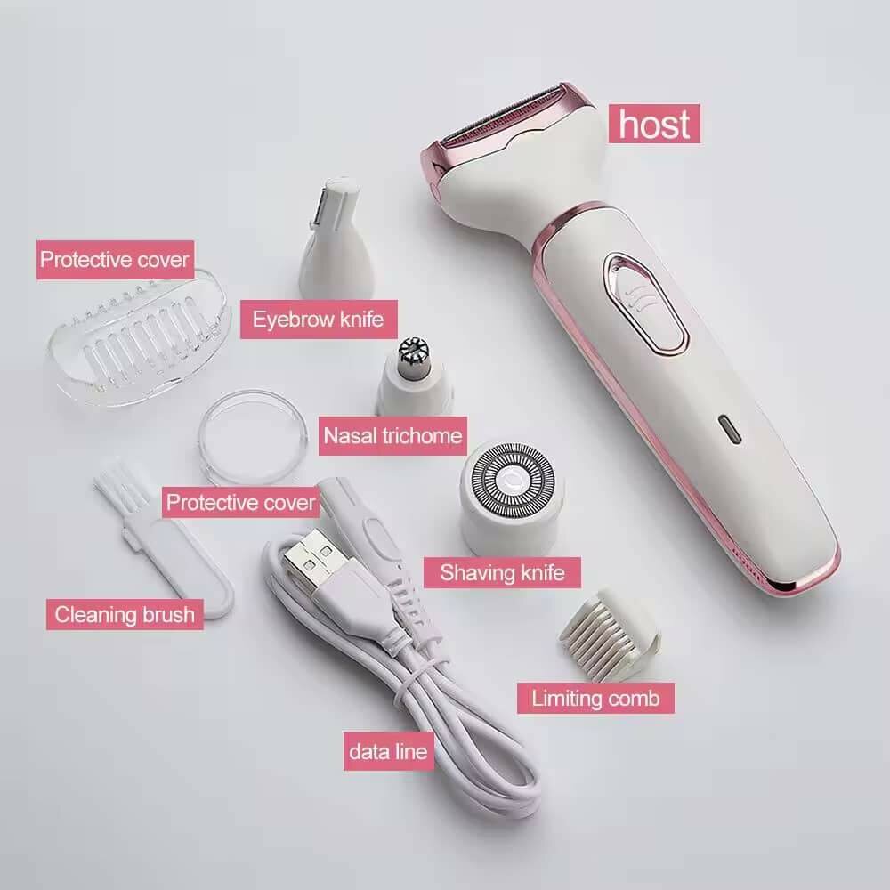 Rasoir électrique 4 en 1 pour femme, épilateur visage, tondeuse bikini, rasoir de voyage pour sourcils, oreilles, nez, lèvres, barbe, aisselles, or rose