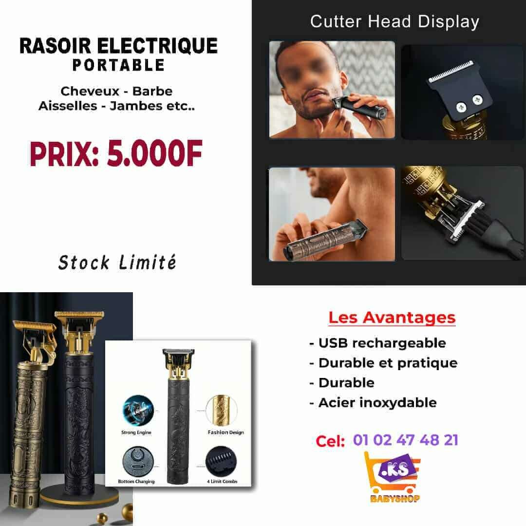 Rasoir robuste et pratique pour cheveux et barbe. Rechargeable USB, acier inoxydable, idéal pour un usage quotidien à domicile ou en voyage.