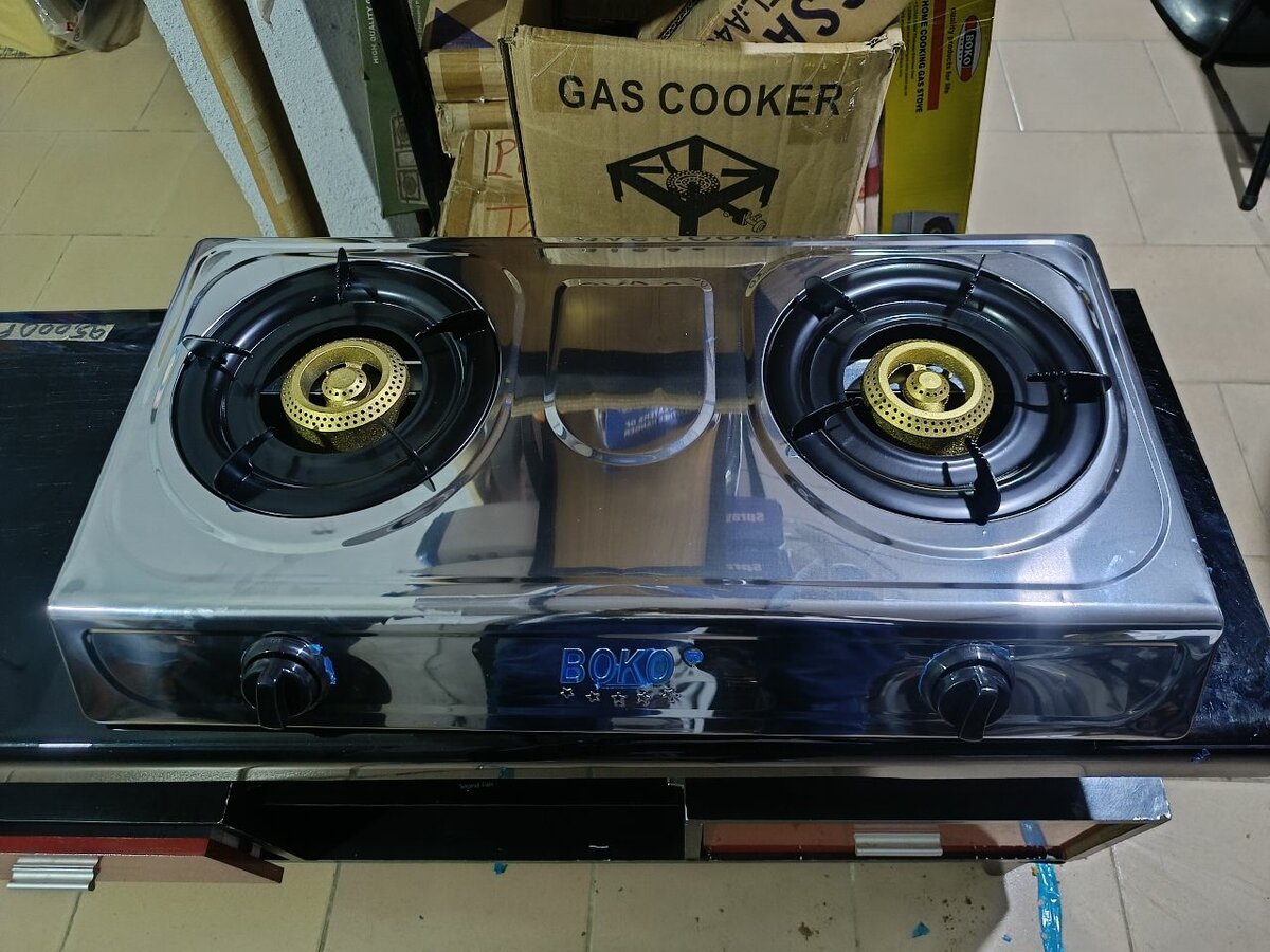 Réchaud à gaz, 2 feux automatiques . Optez pour notre gazinière 2 foyer automatique de très bonnes qualités. Solide Durable Sécurisé Résistant Brûleur: plat et robuste Matière : acier inoxydable Marque : Boko Prix : 12.000f